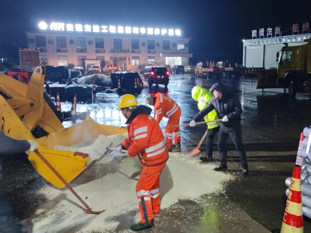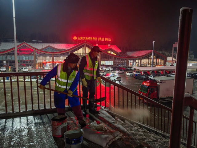 受寒潮天氣影響,1月25日夜至26日凌晨,我省沿淮淮北地區(qū)、大別山區(qū)和皖南山區(qū)溫度驟降,出現(xiàn)雨雪疊加天氣。集團(tuán)相關(guān)單位迅速響應(yīng),連夜開展融冰除雪工作,奮力護(hù)航人民群眾春節(jié)回家路。截至1月26日上午9時,集團(tuán)相關(guān)營運(yùn)單位共計出動人員600余人次,機(jī)械設(shè)備280余臺班,撒布融雪劑600余噸。集團(tuán)所轄路段路面無積雪,車輛有序通行。